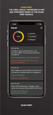 Use the 685 IFSTAⓇ-validated Exam Prep questions to confirm your understanding of the content in the Fire and Emergency Services Company Officer, 6th Edition, Manual. The Exam Prep covers all 16 chapters of the Manual. Exam Prep tracks and records your progress, allowing you to review your exams and study your weaknesses. In addition, your missed questions are automatically added to your study deck. This feature requires an in-app purchase. All users have free access to Chapter 1.