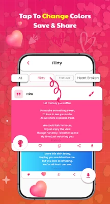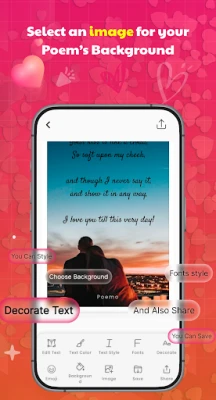 ✔ Add Visual Charm – Overlay romantic speech, love-themed stickers, and relationship stages on your poetry.