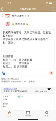 2. 班級通知單:接收班級教師或學校發送的訊息。