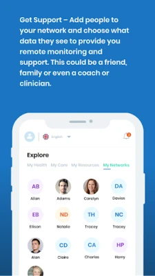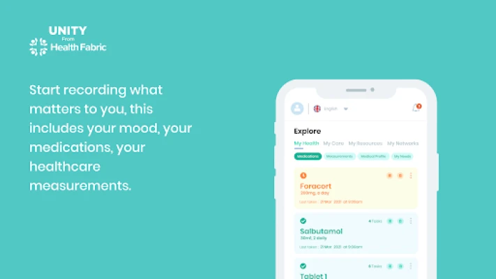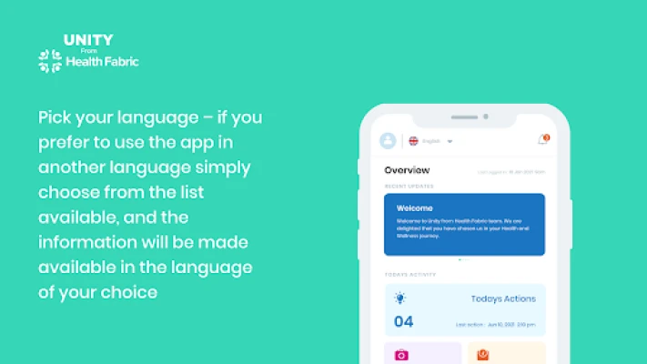 Unity from Health Fabric provides a multilingual service for people to manage their health and wellness. Health professionals from a range of health disciplines create health and wellness plans which can be followed by users to improve the quality of their lives. The app enables users to create social circles of health and wellness support by inviting friends, family and clinicians to view their data and provide them ongoing support. This is further complemented by premium support services for the user including virtual consultations.